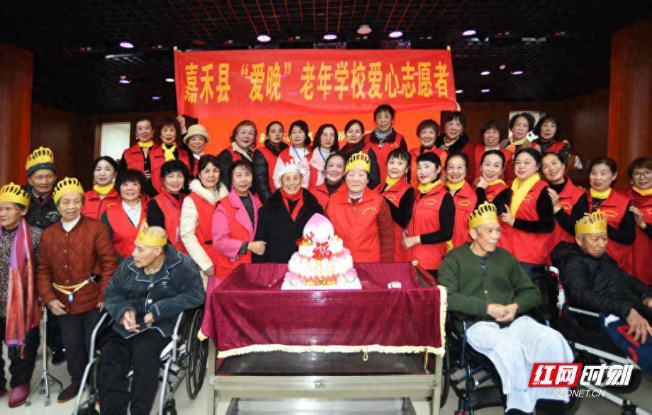 张曼玉组织志愿者在嘉禾老年学校为老人祝寿。